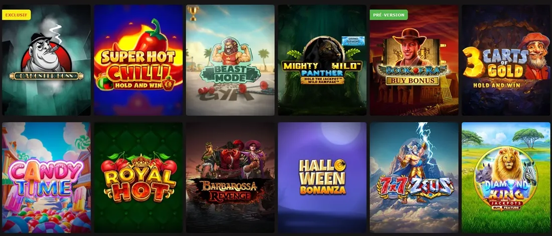 Vous aimez les machines Ă sous ? Alors, vous avez plus de 3500 occasions de vous Ă©clater sur ce site. Les thĂ©matiques abordĂ©es sont variĂ©es : les aventures, la mythologie, les fruits, les animaux, les fruits, etc. Vous y trouverez des sĂ©lections populaires et trĂšs sollicitĂ©es sur le marchĂ©. Câest le cas de :